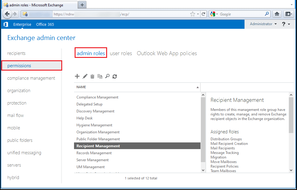 3 – Here, choose Recipient Management in the list of admin roles and follow it with the Add (+) button.