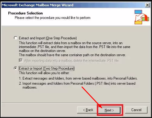 2 – In the window that appears, select Extract or Import (Two Step Procedure) radio button and then click the Next button.